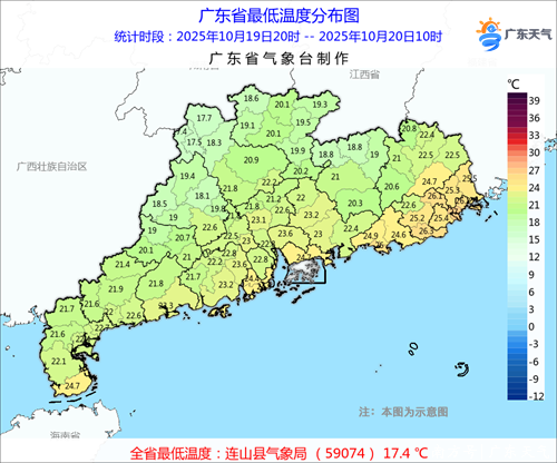 天气实况:19日到20日早晨,湛江出现了分散阵雨,其余大部晴间多云,局部出现了阵雨。19日白天,全省最高气温较18日普遍下降,20日早晨,全省大部最低气温较19日下降了2~4℃,其中清远连山录得全省最低气温17.4℃。另外,粤北山区、珠三角、南部沿海市县已出现5~7级阵风。
